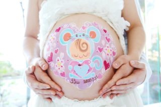 ベリーペイントをされたマタニティフォトのご紹介です☆生まれる季節やご希望に合わせてかわいいペイントに!安産のおまじないともいわれているベリーペイント。 マタニティフォトの撮影に合わせてぜひご検討ください♪