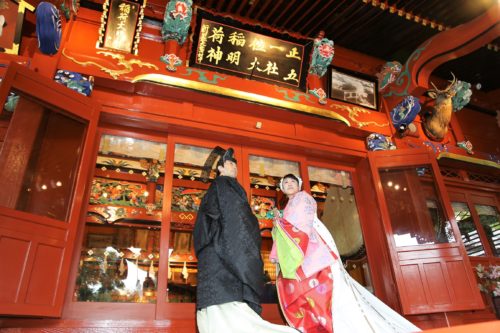 冠稲荷神社には紋服・打掛は似合いますが、衣冠束帯と十二単衣は特別な